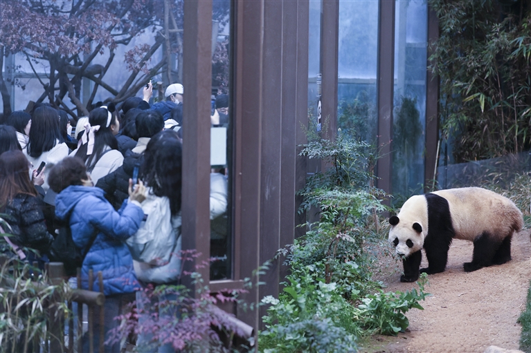 2月20日,韩国民众在韩国爱宝乐园参观大熊猫福宝。