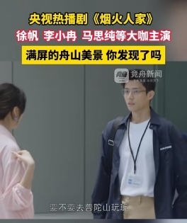 本报讯 近日,央视一套开年首播电视剧《烟火人家》正在热播中,该剧是由小说《她和她的群岛》改编而成的一部都市女性群像情感剧。市民惊喜地发现,剧中有不少熟悉的舟山美景,演员孙千还有一句“你‘五一’有什么安排?要不要去普陀山玩玩”的台词。这部《烟火人家》,让舟山再次走进全国观众视野。