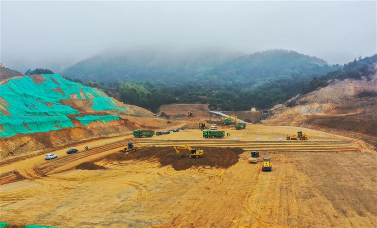 2月20日,位于定海区白泉镇的甬舟铁路存车场项目工地,各类工程机械正在繁忙作业,加快施工进度,力争“开门红”。