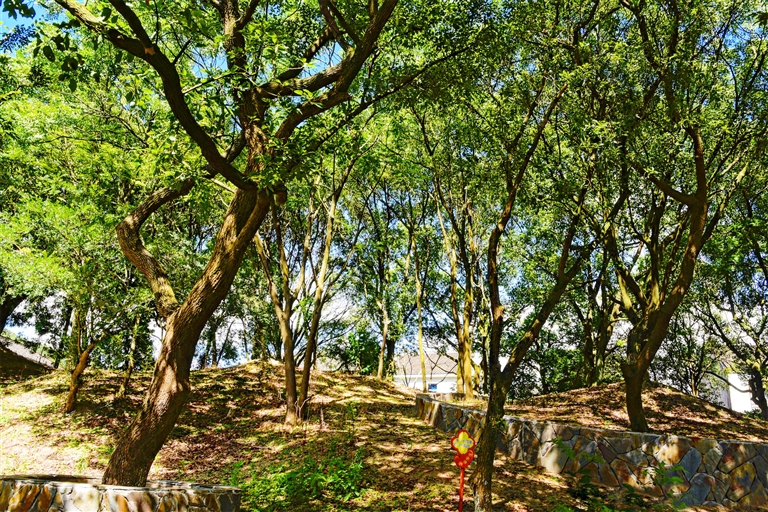 杜庄朴树古树文化公园坐落于普陀区六横镇杜庄村,占地面积约4500平方米,园内分布着10余棵朴树、黄连木,树龄在200年以上的占比约50%,其中一棵425年“高龄”的黄连木,为明朝万历年间所种。