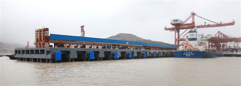 此次获批开放的舟山鼠浪湖码头有限公司卸船码头延伸段码头,系在原有泊位基础上向北端延伸110米,延伸段宽47米。延伸后泊位总长度945米,可满足同时靠泊2艘40万吨级散货船。据估算,延伸段码头对外启用后,年接卸量将增加1800万吨,码头总年接卸量可达4400万吨,将成为全球唯一一座可同时靠泊2艘40万吨级铁矿石船的全流程智能散货单体码头,极大地促进舟山大宗商品资源配置枢纽建设。