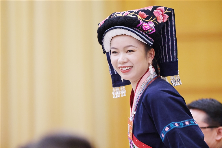 为了赴约全国两会,李利亲手纺制了两套精美的布依族服饰。“我想把家乡最美丽的服饰穿到两会去,把群众的心声带到两会上。”李利说。