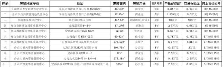 定于2024年3月15日在舟山市公共资源交易网上对下列标的租赁权进行网上竞价,现公告如下: