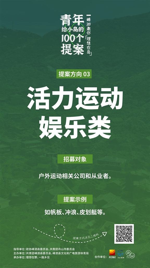 征集“青年给小岛的100个提案”嵊泗邀您助力