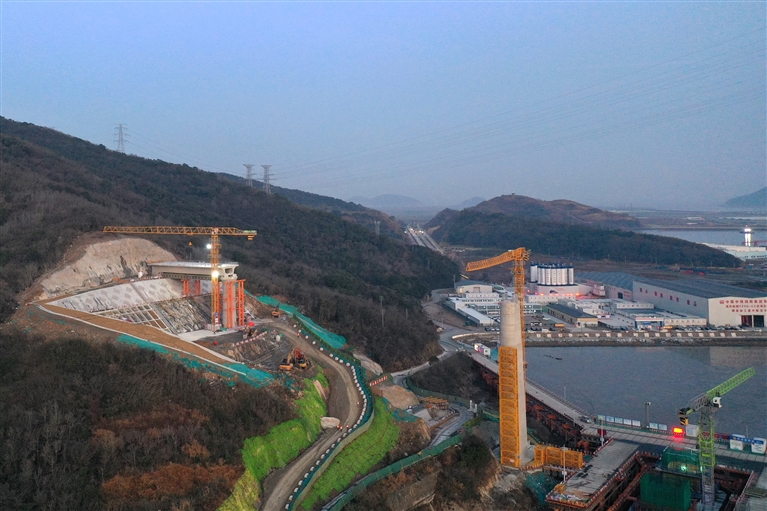 昨天早上6时许,甬舟铁路工程西堠门公铁两用大桥金塘侧施工现场,中铁四局的建设者们开始新一天作业。目前,西堠门公铁两用大桥金塘侧引桥简支梁已完成浇筑,主桥1号、2号主墩已进入塔柱施工阶段。 摄影 通讯员 姚峰