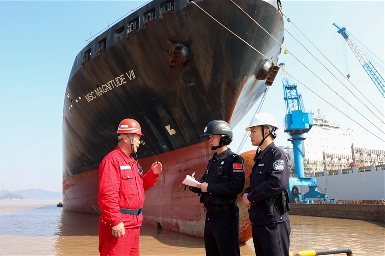 我市边检站民警联合定海区公安分局民警走进辖区船企了解企业安全生产相关情况