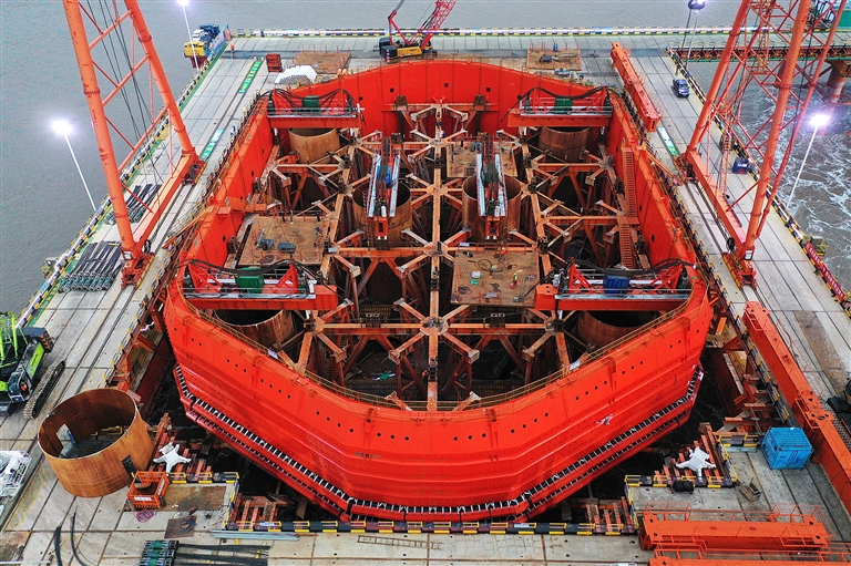 昨天,经过7个小时的连续施工,甬舟铁路西堠门公铁两用大桥5号墩钢围堰成功下放,为后续主塔施工奠定了基础。据介绍,5号墩为西堠门公铁两用大桥索塔主墩,下放的钢围堰长72.2米、宽50.6米、高达16米,总重约4500吨。