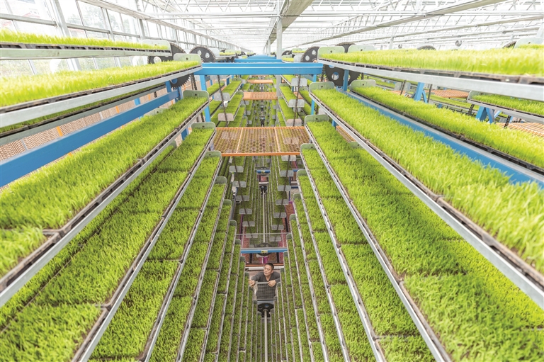 2024年3月12日,在重庆市永川区仙龙镇双星村的智能育秧基地内,秧苗在水肥一体化系统的精心照料下长势喜人。 新华社记者 黄伟 摄
