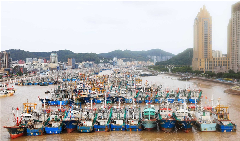 应对今年第21号台风“康妮”可能带来的影响,昨天,大批渔船纷纷停靠沈家门渔港避风摄影 记者 陈永建