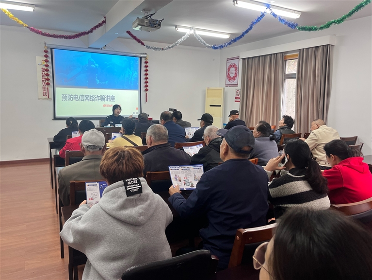 近日,杭州银行定海支行与城东派出所在城东街道畚金社区活动中心联合举办反诈知识宣传讲座,旨在增强社区居民的防骗意识,共同构建安全稳定的社区环境。