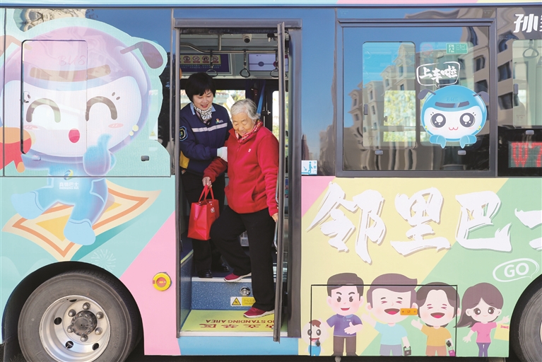11月30日,“邻里巴士”驾驶员搀扶老人下车。