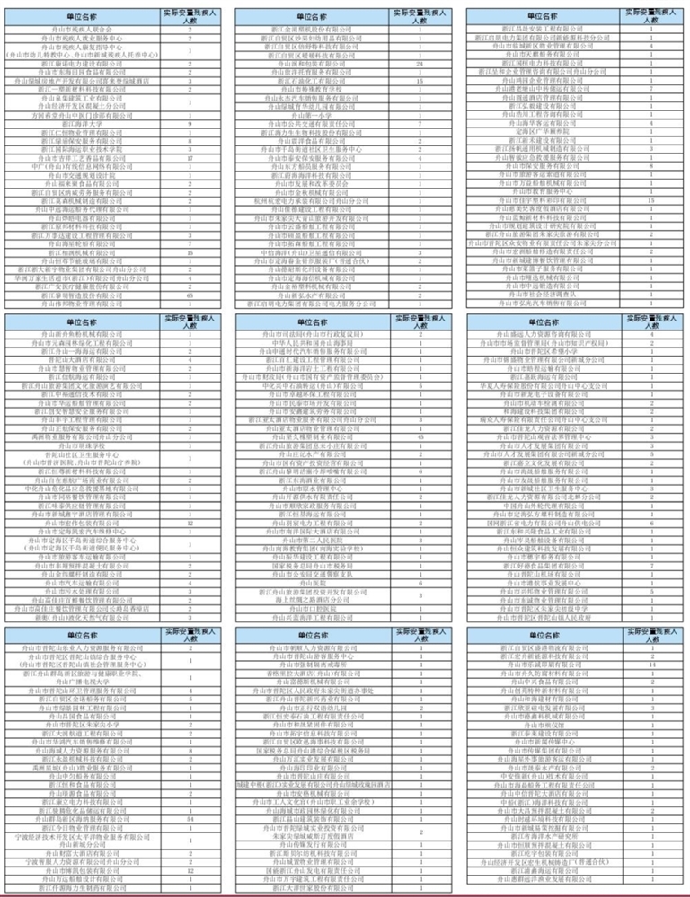 舟山市市本级2023年度按比例安排残疾人就业情况公示