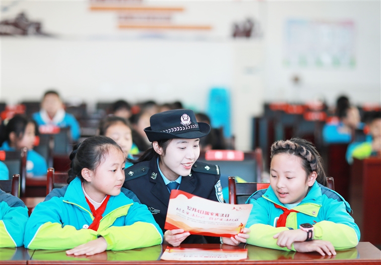 12月2日,民警在贵州省赤水市第二小学为学生普及宪法知识。