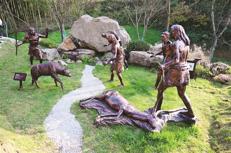 这是12月6日在位于安徽省池州市东至县的华龙洞遗址拍摄的华龙洞人狩猎场景复原 新华社记者 周牧 摄