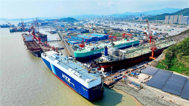船舶产业是我市海洋经济“九大产业链”之一。市经信局相关负责人介绍,今年全市开展船舶产业高质量发展专项行动,1~10月我市造船三大指标分别同比增长80.4%、35.9%和48.9%。修船量占全国40%左右,占全球20%以上,国际最大船舶修理改装基地地位得到业内普遍认可。