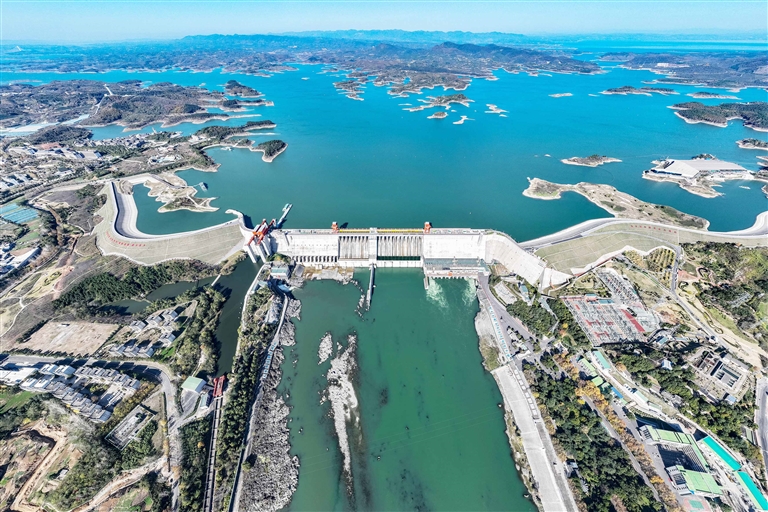 这是11月30日拍摄的丹江口大坝(无人机照片)。