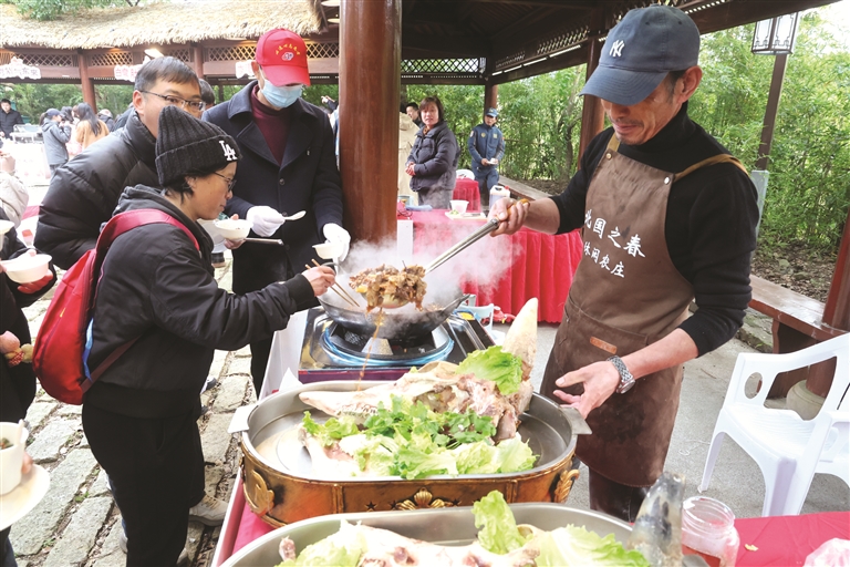 本报讯 这一边,如意大汤圆的锅盖一掀开,四溢的香气顿时引来一群“试吃官”;那一头,岑港对虾倒入油锅时发出的“滋滋”声,又吸引了人群的目光……昨天上午,由定海区委宣传部主办、马岙街道承办的定海区农渔村文化礼堂“我们的村味”暨“文廊百味”村宴厨艺大赛在马岙文廊集市举行(见图)。来自定海区11个镇街的“明星乡厨”以本地食材为原料现场比拼厨艺,一道道色香味俱全的菜肴让市民大快朵颐。