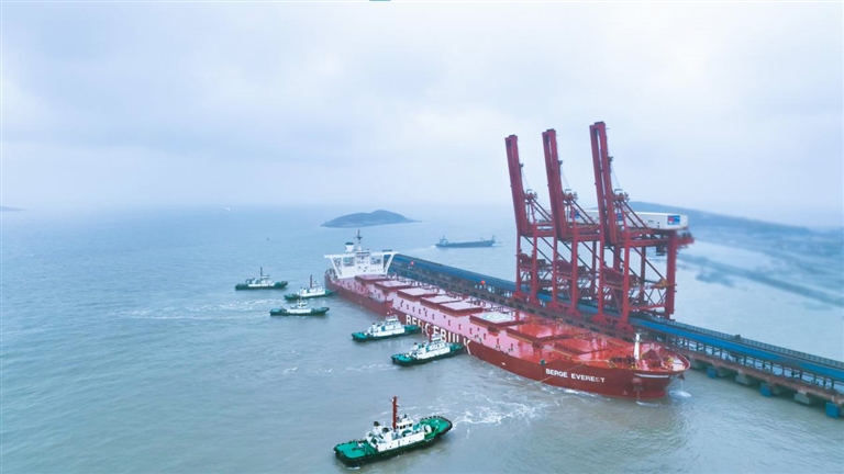 40万吨级矿船“珠峰”轮靠泊鼠浪湖码头