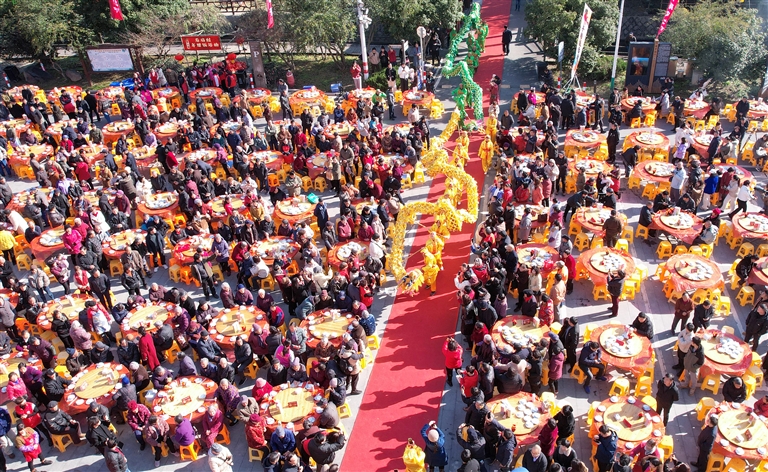当日,浙江省湖州市德清县莫干山镇后坞村举办第五届民俗集福节“年猪饭”活动,打年糕、舞龙灯、做圆子、制礼糕、看表演,村民们与前来观摩的游客一起感受乡村传统民俗年味,喜迎新年。