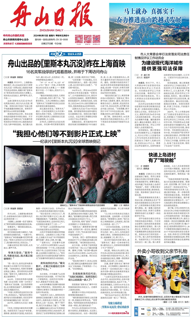 “里斯本丸”事件亲历者家属Karen Louise Brich:渔民很善良,舟山的人们都很善良,太感动了,我被当地渔民的所作所为震撼了。下转第2版▶ ▶上接第1版