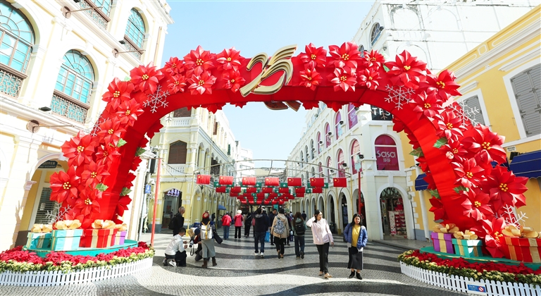 12月17日,人们在澳门一处景区游览。