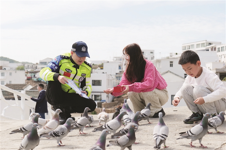 嵊泗花鸟岛,作为游客云集的旅游胜地,成为反诈宣防的重点区域。花鸟派出所独辟蹊径,推出“和平鸽”反诈特色警务。精心定制反诈脚环的“警鸽”,伴随“送鸽粮”活动吸引了众多游客的目光。民警巧妙借助游客对“反诈和平鸽”的好奇,深入普及反诈知识,“警鸽”与“警哥”携手合作,成功将花鸟岛打造成全县零发案的典范岛屿。