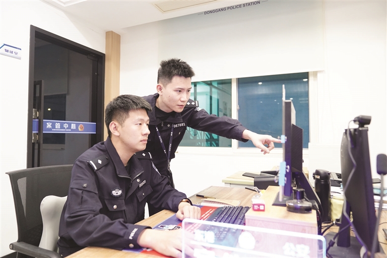 徐博文(右)与同事开展线索研判