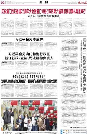 庆祝澳门回归祖国25周年大会暨澳门特别行政区第六届政府就职典礼隆重举行
