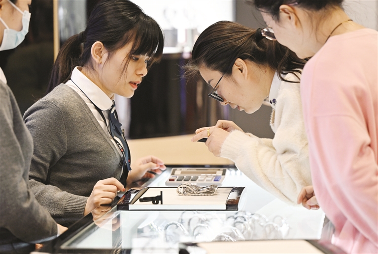 12月21日,顾客在海南省海口市日月广场免税店选购手表。