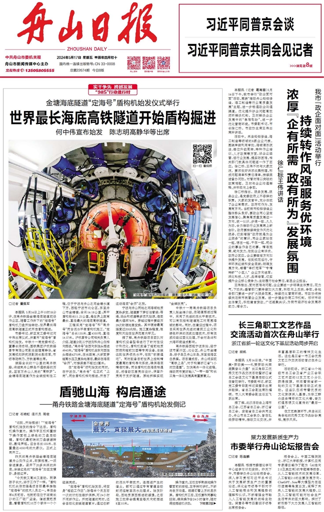 今年5月16日,甬舟铁路金塘海底隧道盾构机始发掘进,世界上建设长度最长、直径最大的海底高铁隧道正式迈入盾构施工阶段。