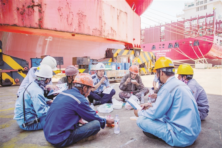 走进舟山长宏国际船舶修造有限公司,船台上停泊着多艘在建船舶,火花四溅的忙碌生产场景映入眼帘。在定海工业园区,多个船舶修造企业有力支撑着舟山海洋产业发展,随之而来的是外来务工人员多、流动性大产生的诸多问题。“无论有什么困难,薛警官总能第一时间赶到,帮了我们不少忙。”今年6月,长宏国际一劳务外包队负责人向警务站求助,员工张某作业时不慎摔伤,由于其公司是新注册,没有处理工伤事故的经验。知悉情况后,薛磊帮其了解工伤保险知识,邀请辖区司法机构共同处理,后顺利解决了该起工伤事故。