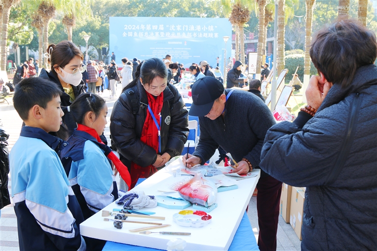 “沈家门渔港小镇”全国鱼拓总决赛暨迎元旦鱼拓书法题跋赛,12月29日在普陀北安公园举行。12位国内鱼拓高手展示技艺,10多位书法家在鱼拓作品上挥毫书写题跋。当地一批学生和业余爱好者现场学习创作鱼拓画。中国国际教育电视台为“舟山沈家门渔文化合作基地”授牌。