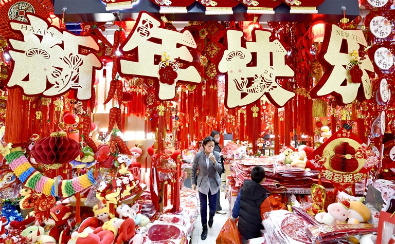 2024年12月31日,北京市民在购买新年装饰品。