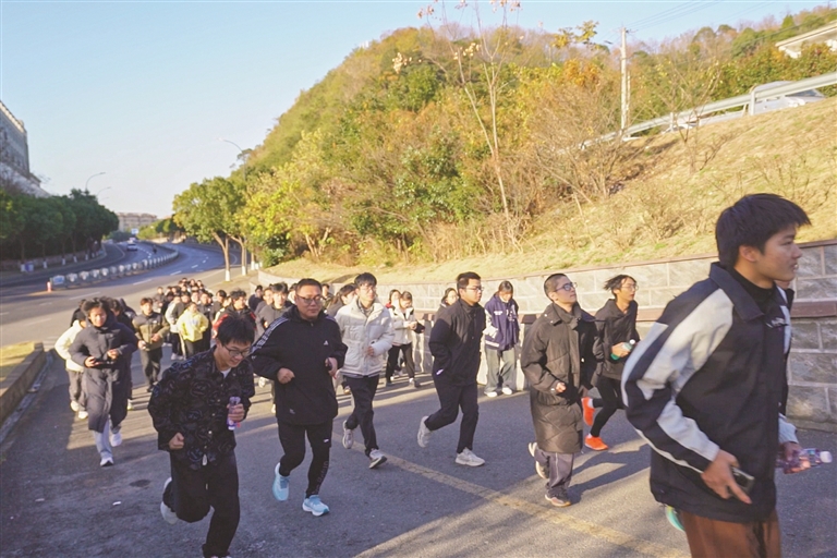 昨天上午,300余名岱山青年在磨心山一路向上跑,登高迎新年 图/袁佩华