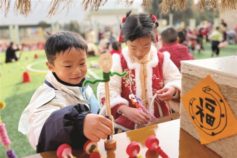 前天上午,普陀区展茅幼儿园开展“瑞蛇迎新年 赶个年味集”活动 图/翁馨叶