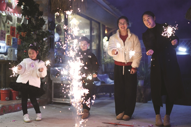 前天晚上,市民点燃烟花迎接新年 图/姚凯乐