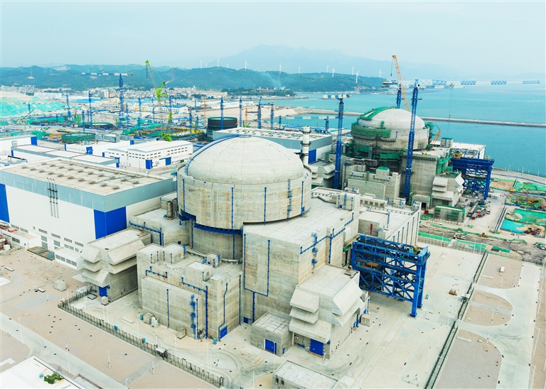 2025年1月1日拍摄的漳州核电1号机组(画面左侧)(无人机照片)。