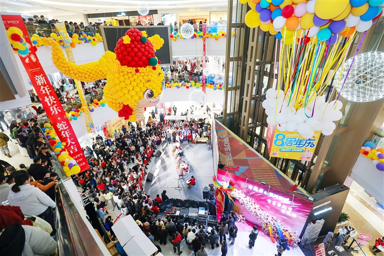 由市商务局主办、舟山传媒集团有限公司承办的“庆元旦迎新年消费狂欢夜”活动,上月31日在新城凯虹、东港凯虹、定海凯虹3家商场同步举行。看演出、逛市集、吃美食、买新衣……活动掀起一拨消费热潮,各项促销活动为市民带来了丰富多彩的消费体验。