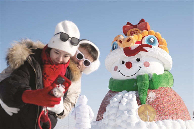 新年伊始,“冰城”哈尔滨正值冰雪旅游旺季,当地在市区打造了多个雪人景观供游客参观游玩。这些造型各异的雪人仿佛是“冰城”的冬日使者,迎接来自世界各地的游客,展现冰雪文化的魅力。