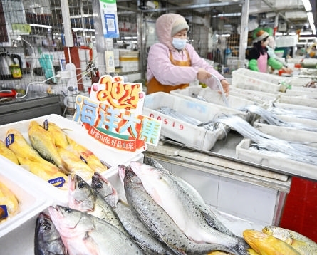 1月7日,在城阳水产海鲜批发市场,商户为“海洋大集”备货。