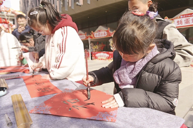 昨天,由市商务局主办的“2025浙里过大年”迎新春系列主题活动在新城举行。活动中,书法爱好者和小朋友一起写“福”字和春联,弘扬中华优秀传统文化,喜迎新春佳节。摄影 记者 陈永建