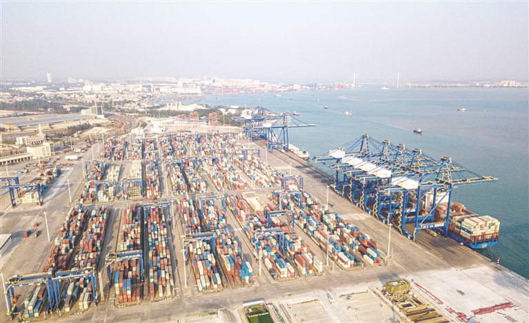 1月11日在海南洋浦经济开发区拍摄的洋浦国际集装箱码头(无人机照片)。