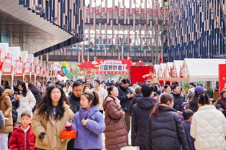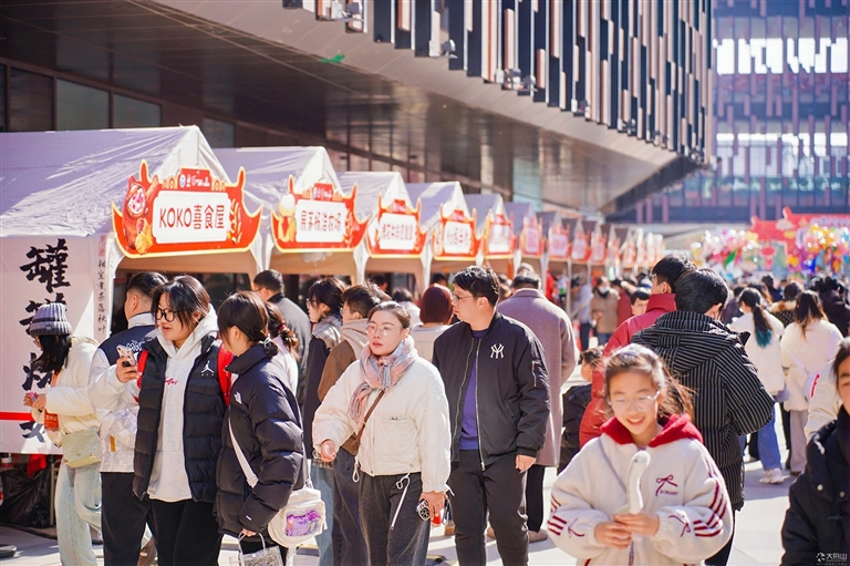 非遗食肆、网红美食的摊位前也排起了长队。降温天里,一根香喷喷的葱塌年糕配一杯热气腾腾的珍珠奶茶,成为许多市民驱寒暖胃的首选。摊主们忙得不亦乐乎,空气中弥漫的食物香气也增添了浓厚的节庆氛围。KoKo喜食屋的老板感叹道:“原本我们以为周六很冷,人流量应该很少,没想到大家的消费热情这么高。”