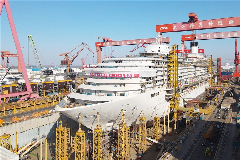第二艘国产大型邮轮“爱达·花城号”全船贯通