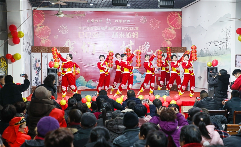 这场演出,客串的不止老张一人。主持人也要表演越剧,“村晚”导演翁舟飞自己要上台跳舞。“现在老百姓的文化生活越来越丰富。”作为村里的文化员,翁舟飞感触很深,公共服务一体化,让各类文化生活变得触手可及。文化氛围足了,村里的文化达人自然越来越多。