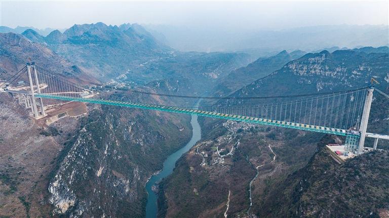 当日,在建世界第一高桥——贵州六安高速公路花江峡谷大桥成功合龙,为今年通车运营打下坚实基础。项目资料显示,大桥为钢桁梁悬索桥,全长2890米,其中主桥跨径1420米,桥面至水面高度625米。建成后,会成为新的世界第一高桥、世界第一的山区跨径桥梁。