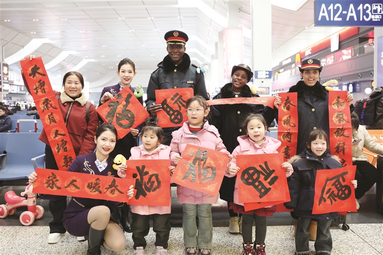 “中国的春节就要到了,很多人都赶着回家,作为春运志愿者,帮助旅客回家团圆是一种快乐和自豪的体验。”乍得留学生卡尔贝说。在他们看来,春运志愿者的经历不仅是一种前所未有的体验,更是一次对中国文化的深入了解。新华社记者 陈斌 摄