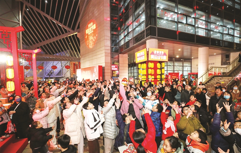 活动现场,怀旧跳格子、锤丸、幸运套圈、年画印刷、剪窗花等一系列年俗小游戏引来不少群众跃跃欲试。大家在自己感兴趣的项目区域前排起了长龙,充分享受着游戏带来的欢乐。