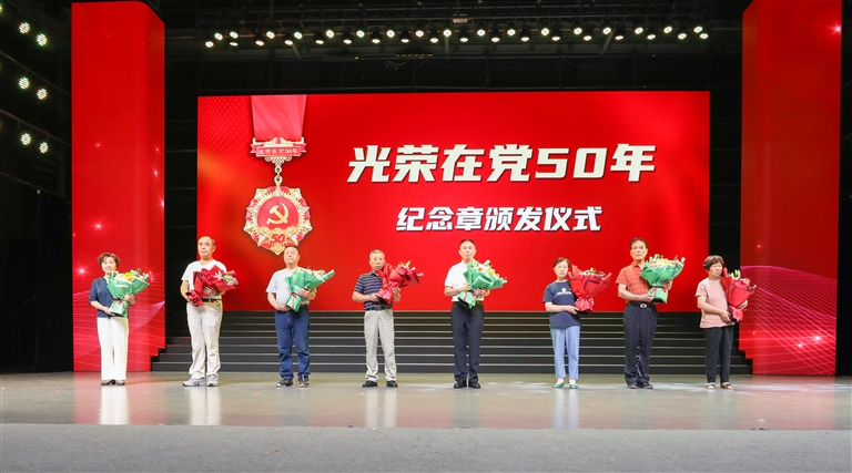 活动中,由市直机关青年宣讲队带来的《永不磨灭的红色记忆》舟山历史人物讲述,将现场气氛推向高潮。青年宣讲员们以富有感染力的语言,生动再现了舟山革命先辈的奋斗历程。8位老党员代表获颁“光荣在党50年”纪念章,40名朝气蓬勃的新党员代表上台庄严宣誓,1.5万名全市机关党员线上线下同步重温入党誓词。