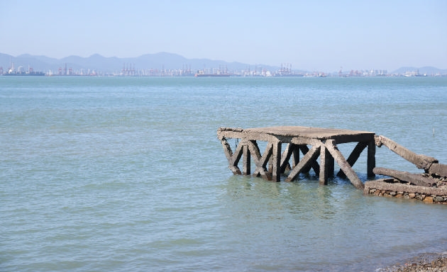 受天气和潮流变化,金塘海港村周边的海水近日呈现青蓝色,与周边的海滩、灯塔、礁石、旧码头等组成一幅美丽的海岛风景图,成为一个网红打卡地 通讯员 张玮 摄